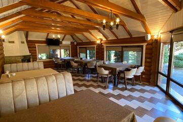 На базі відпочинку "Ельдорадо" нашим гостям ми пропонуємо ще одну невелику окрему локацію для обідів та святкувань – "Камінний зал".