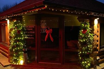 Це невеликий дерев'яний будиночок з каміном, де можна замовити столик для невеликої компанії або орендувати для Вашої події. Зал має приємне природнє освітлення вдень, великі вікна при потребі можна прикрити шторами, а ввечері добре освітлюєтья лампами, оформленими під канделябри зі свічками.